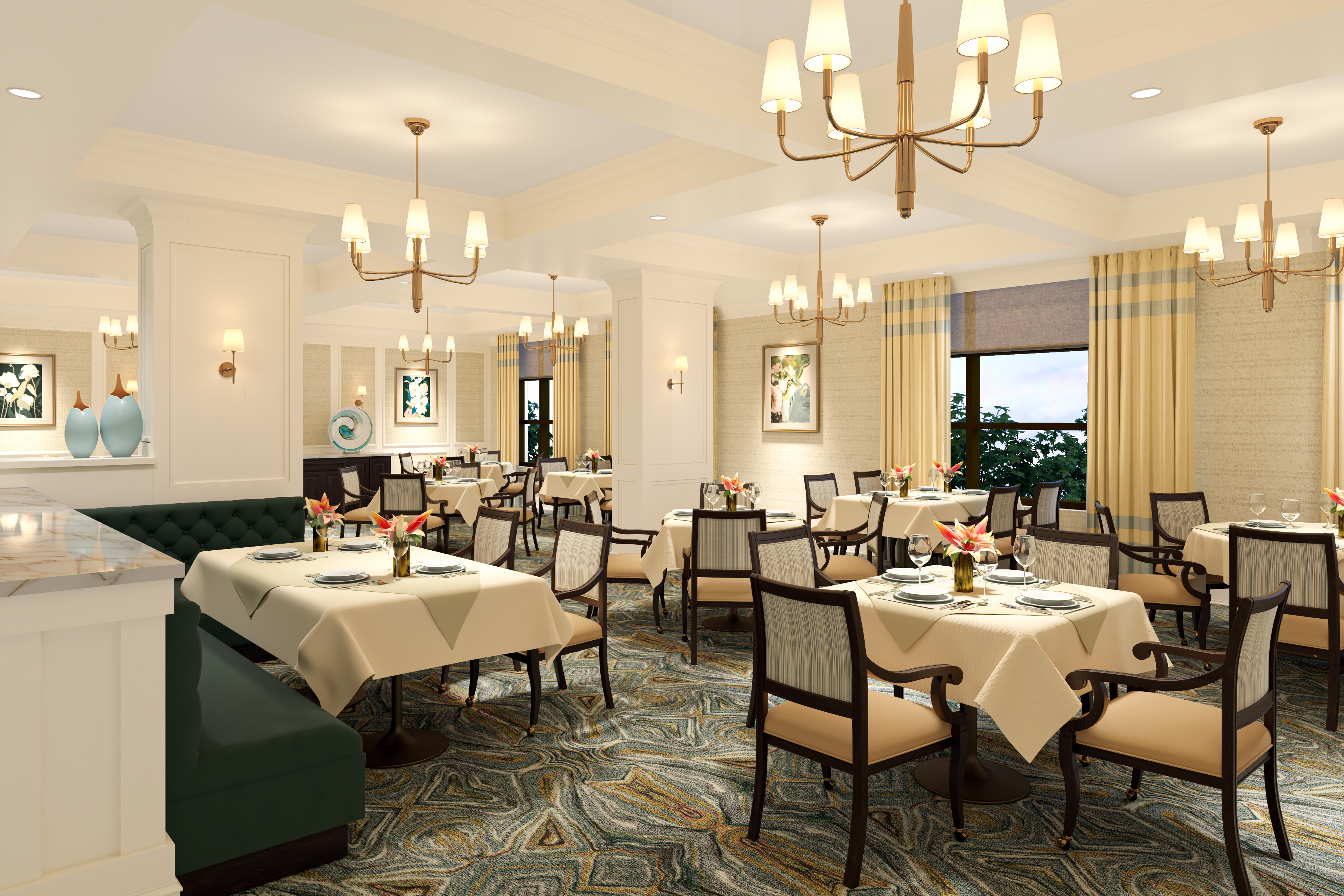 Flexible dining at Amica Jubilee House also means choosing where and when to enjoy your meal. You can choose a table in the fully licensed dining room and join the conversation while your food is served by attentive staff. You may also like to dine in our self-serve bistro, on the patio or in the comfort of your suite. Join us for seasonal dinners and special events where we celebrate holidays and other occasions. In addition to our main dining room, we have dedicated dining rooms and lounges for our Assisted Living, Long-term Care and Memory Care residents.